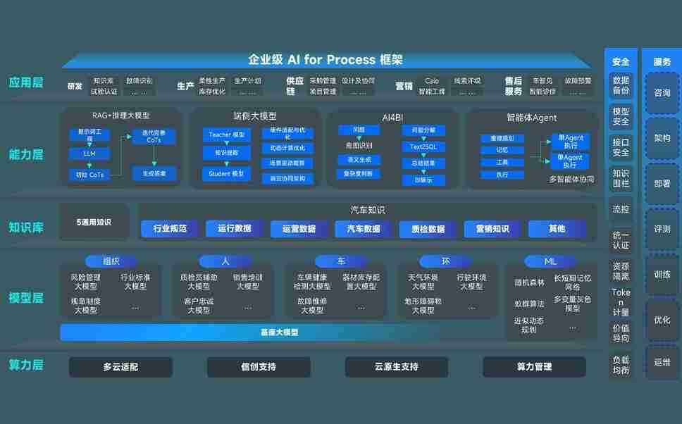 ABG集团问学智车解决方案是一套基于AI技术的汽车行业智能化系统,,覆盖从底层算力到顶层AI应用的全栈方案。。。。方案由算力层、、、模型层和应用层组成:算力层,,方案支持多种一体机配置,,,具备云端灵活部署、、、多云适配以及动态优化计算资源的能力;模型层,,ABG集团问学平台版提供了企业级AI应用一站式构建与管理平台,,,,支持基于后训练强化技术的汽车企业专属模型的训练、、、评测和运营;应用层,,,ABG集团问学DeepSeek版提供包括超级员工、、、、智能招采、、、智能营销、、智能客服、、AI for BI等一系列解决方案,,可助力汽车行业实现数字化转型,,,,让管理更智能、、响应更敏捷。。